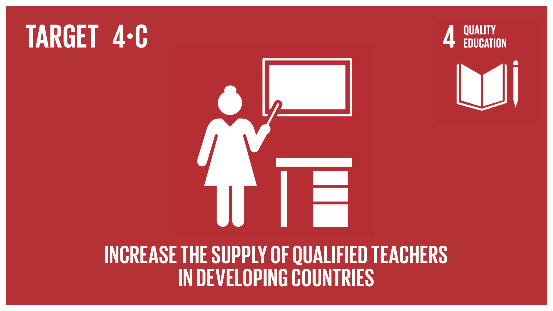 4.c Tegen 2030 op aanzienlijke wijze de toevloed verhogen van gekwalificeerde leraren, ook via internationale samenwerking voor lerarenopleidingen in ontwikkelingslanden, in het bijzonder in de minst ontwikkelde landen en de kleine eilandstaten.